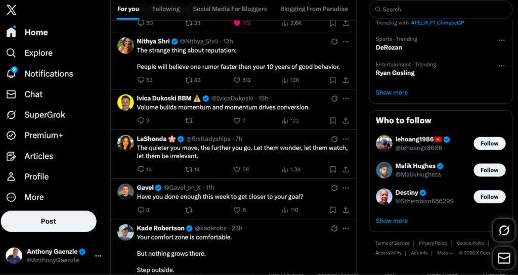 Because of this, if you stay active, post relevant content, and build relationships, X is particularly powerful for audience and personal brand growth.