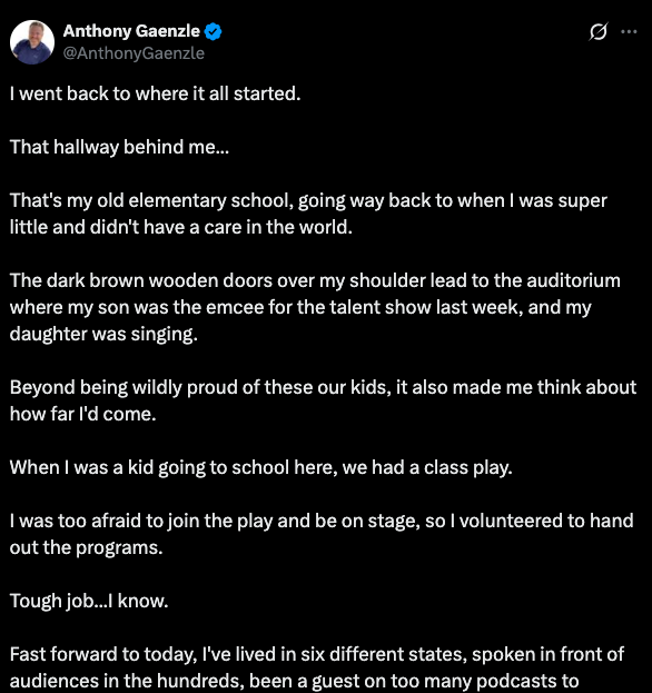 For example, here’s a little sample from a post I published recently with a selfie and a story connected to my niche subject matter expertise along with a little connection to my past. Read the full post here.