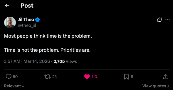 For example, this post by Jil Theo highlights a common problem we all face. Time is limited. Prioritization is so important. It hits, because it’s relevant to so many of us.