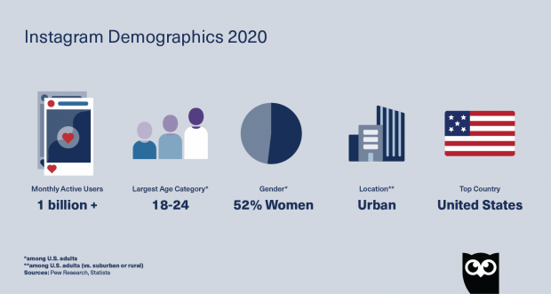 For example, the 18-29-year-olds are the most active on Instagram, while the 50-64-year-olds are the most active on Pinterest. Check out this graphic from 2020 showing some insights into Instagram user demographics. Start with stats like these, then dig deeper into the specifics of your audience.