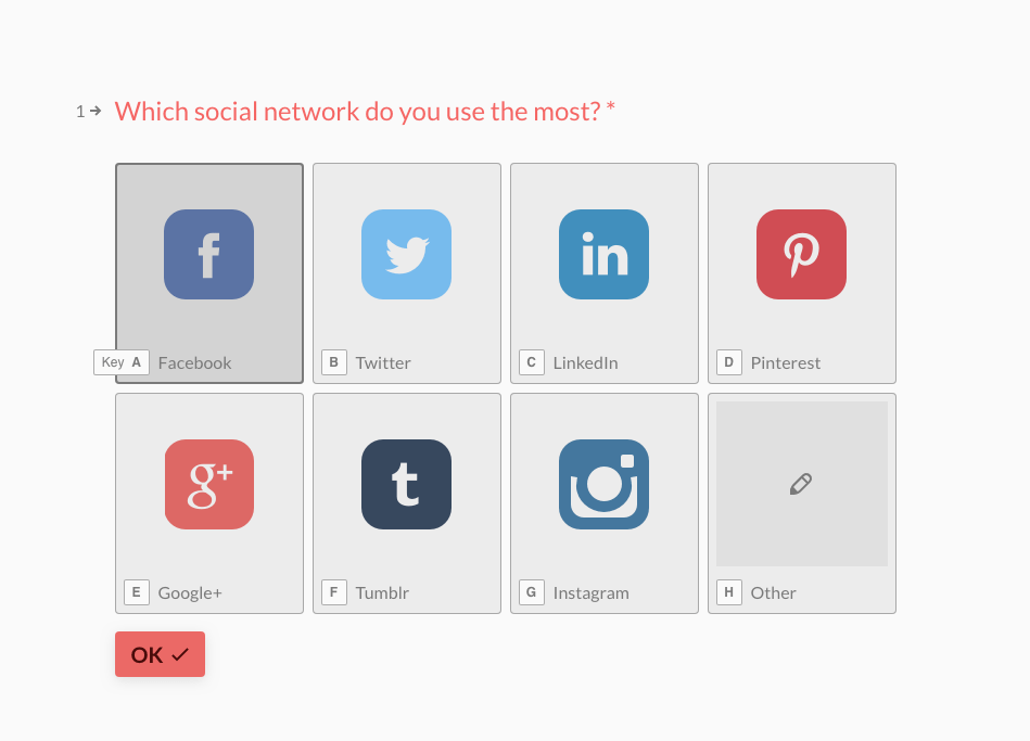 For creating polls to take the pulse of your audience, SurveyMonkey, Google Forms, and Typeform are a few free options. Typeform’s social media survey template may also inspire. It has a really user-friendly, engaging setup that walks your audience through the survey in a pleasing way to help get the best results. Customize it with questions that will offer you information about your customers, and then use the info you gain to determine whether Instagram is a fit.